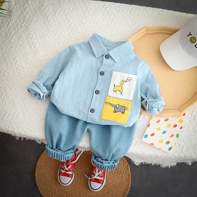 Комплект складається з легкої сорочки з оригінальними абстрактними малюнками тваринок та зручних штанів, представлених у ніжних пастельних кольорах.