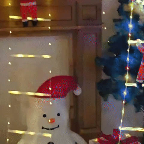 Гірлянда створена у вигляді драбини, по якій кумедний Санта підіймається вгору. Завдяки світлодіодним вогникам композиція виглядає дуже ефектно та додає чарівності будь-якому фасаду чи інтер’єру.